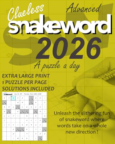 Clueless Snakeword 2026 - A Puzzle A Day -Advanced - EXTRA LARGE PRINT - 1 Puzzle Per Page - Solutions Included