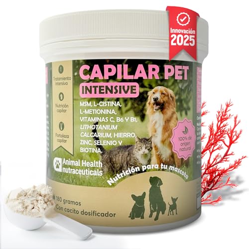 Intensivt djurhår för hundar och katter - MSM, vitamin C, B6 och B1, järn, zink, selen, biotin, hårnäring och styrka – hälsa stark och glänsande päls – 180 g flaska