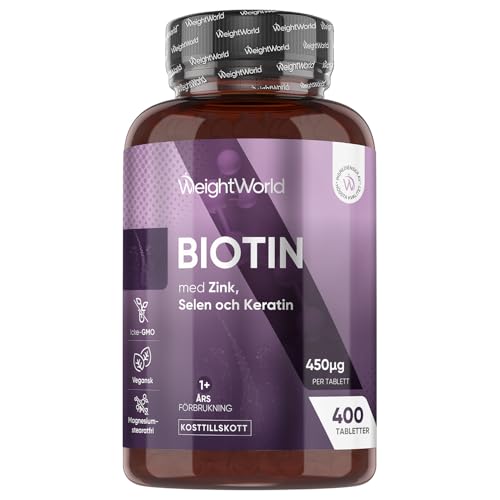 Biotin Komplex med keratin 25 mg, selen, zink – 400 veganska tabletter – 1+ års förråd – Biotin bidrar till att upprätthålla normalt hår (EFSA) – Fri från magnesiumstearat – WeightWorld