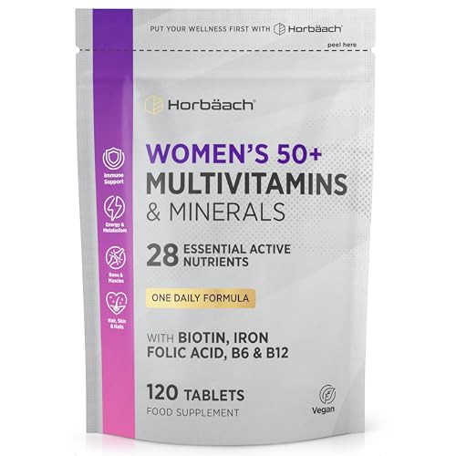 Multivitamin Kvinna 50 Plus | 120 Veganska Tabletter | 27 Viktiga Vitaminer och Mineraler | med Vitamin C Biotin Vitamin B6 och Vitamin B12 | av Horbaach
