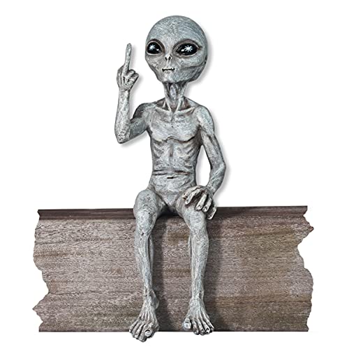 John Bernard & Company Rude Alien Statue “Flipping The Bird” 10″ H Shelf Sitter Extraterrestrial Figurine Funny Home or Garden Decoration (Alien Gray)…