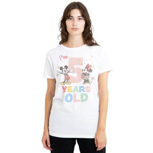 mandarin creative ltd Musse och Mimmi Pigg 'I'm 5 Years Old Birthday' t-shirt dam t-shirt, vit, stor, Vitt, L