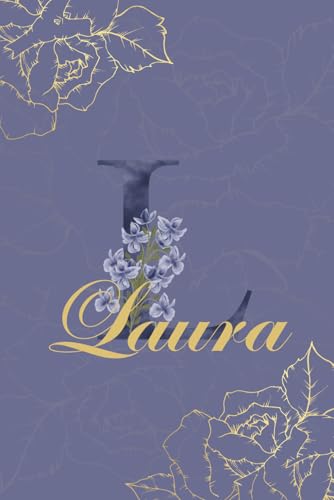 Laura Journal: Monogram L Personalized Floral Notebook for Women Decorative Purple and Gold Monogram Journal, Cute Aesthetic Notebook, Personalized Diary and Birthday Gift for Women Named Laura