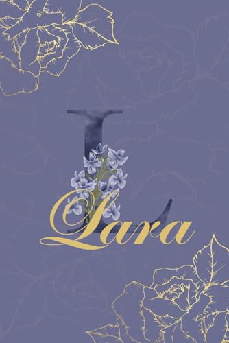 Lara Journal: Monogram L Personalized Floral Notebook for Women Decorative Purple and Gold Monogram Journal, Cute Aesthetic Notebook, Personalized Diary and Birthday Gift for Women Named Lara