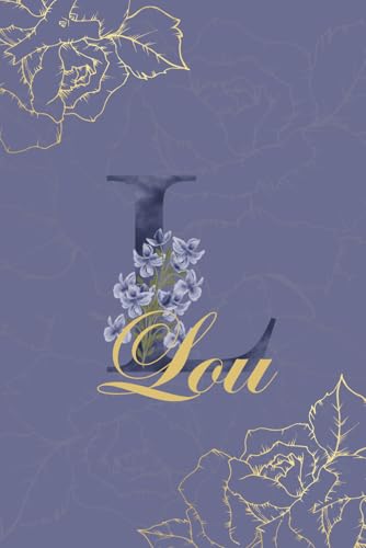 Lou Journal: Monogram L Personalized Floral Notebook for Women Decorative Purple and Gold Monogram Journal, Cute Aesthetic Notebook, Personalized Diary and Birthday Gift for Women Named Lou