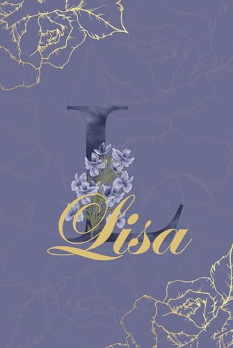 Lisa Journal: Monogram L Personalized Floral Notebook for Women Decorative Purple and Gold Monogram Journal, Cute Aesthetic Notebook, Personalized Diary and Birthday Gift for Women Named Lisa