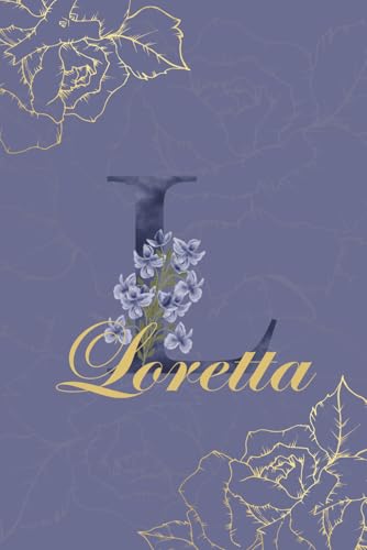 Loretta Journal: Monogram L Personalized Floral Notebook for Women Decorative Purple and Gold Monogram Journal, Cute Aesthetic Notebook, Personalized Diary and Birthday Gift for Women Named Loretta