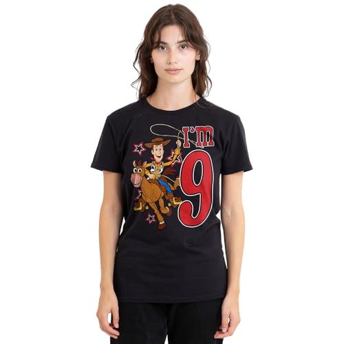 mandarin creative ltd Toy Story Birthday Woody I'm 9 Ladies T-shirt, svart, Large, Svart, L