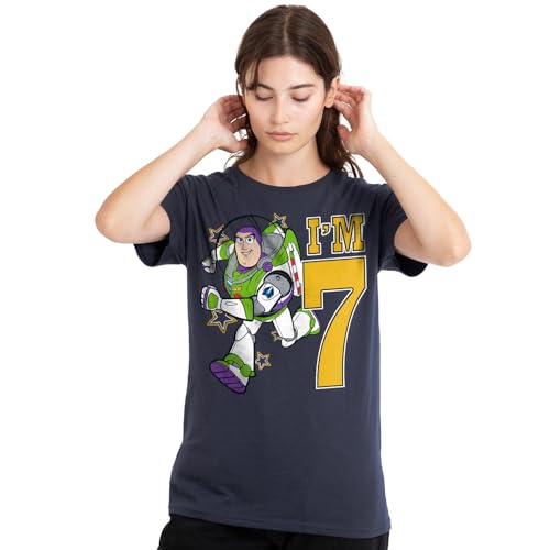mandarin creative ltd Toy Story Birthday Buzz I'm 7 Ladies T-shirt, Deep Navy, Large, Djup marinblå, L