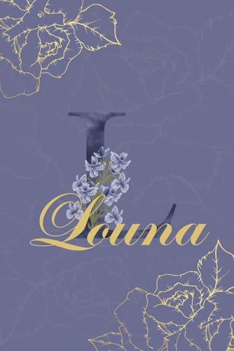 Louna Journal: Monogram L Personalized Floral Notebook for Women Decorative Purple and Gold Monogram Journal, Cute Aesthetic Notebook, Personalized Diary and Birthday Gift for Women Named Louna