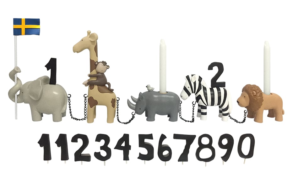 KIDS by FRIIS - Birthday Train - Safari with 11 numbers, Swedish flag and chains