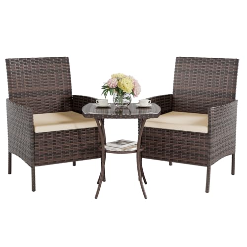 UDPATIO Rotting trädgårdsmöbler set uteplats vinterträdgård utomhus bistro set 3 st uteplats väv följeslagare stol bordsset brun
