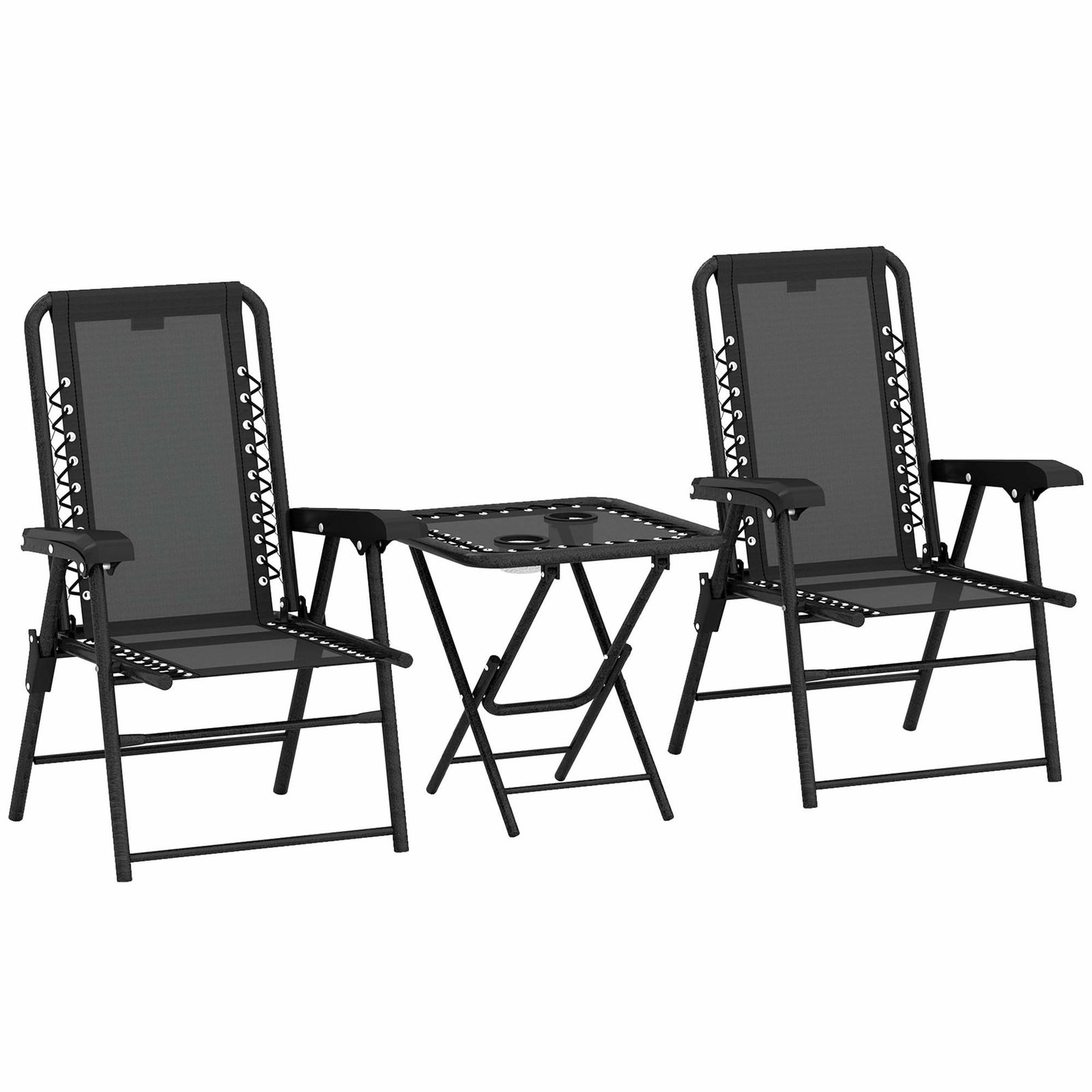 Bistroset för utomhusbruk – hopfällbart stål, 3 delar, svart