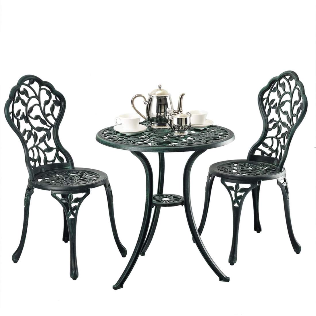 Antikgrönt 3-delat Bistroset i Gjuten Aluminium