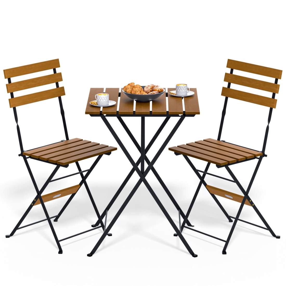 Bistroset i akaciaträ för 2 – Hopfällbart bord och stolar