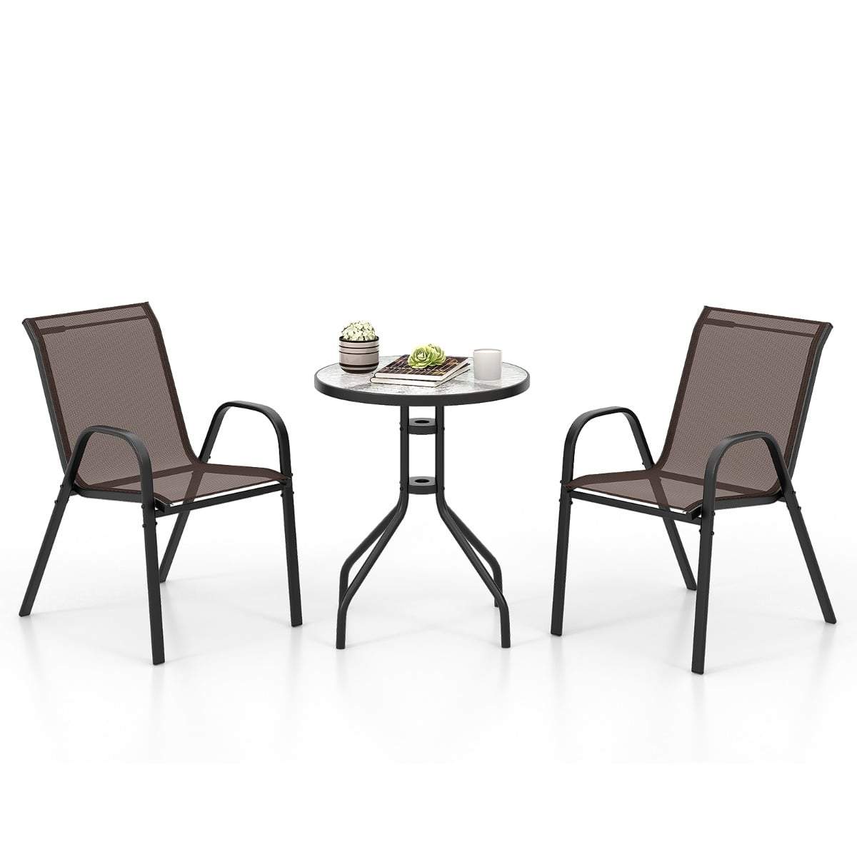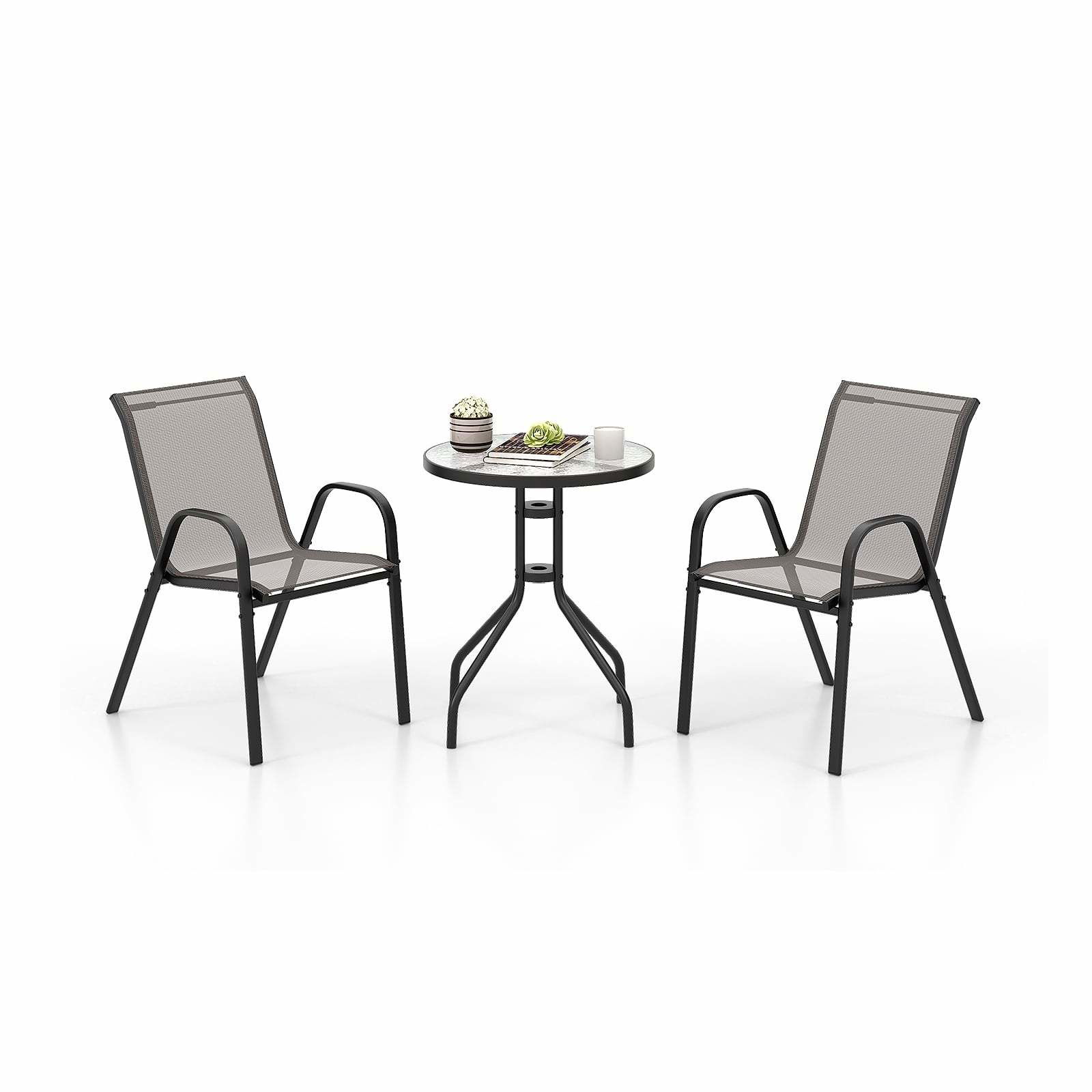 Bistroset för utomhusbruk – 3 delar, stapelbara stolar, väderbeständig