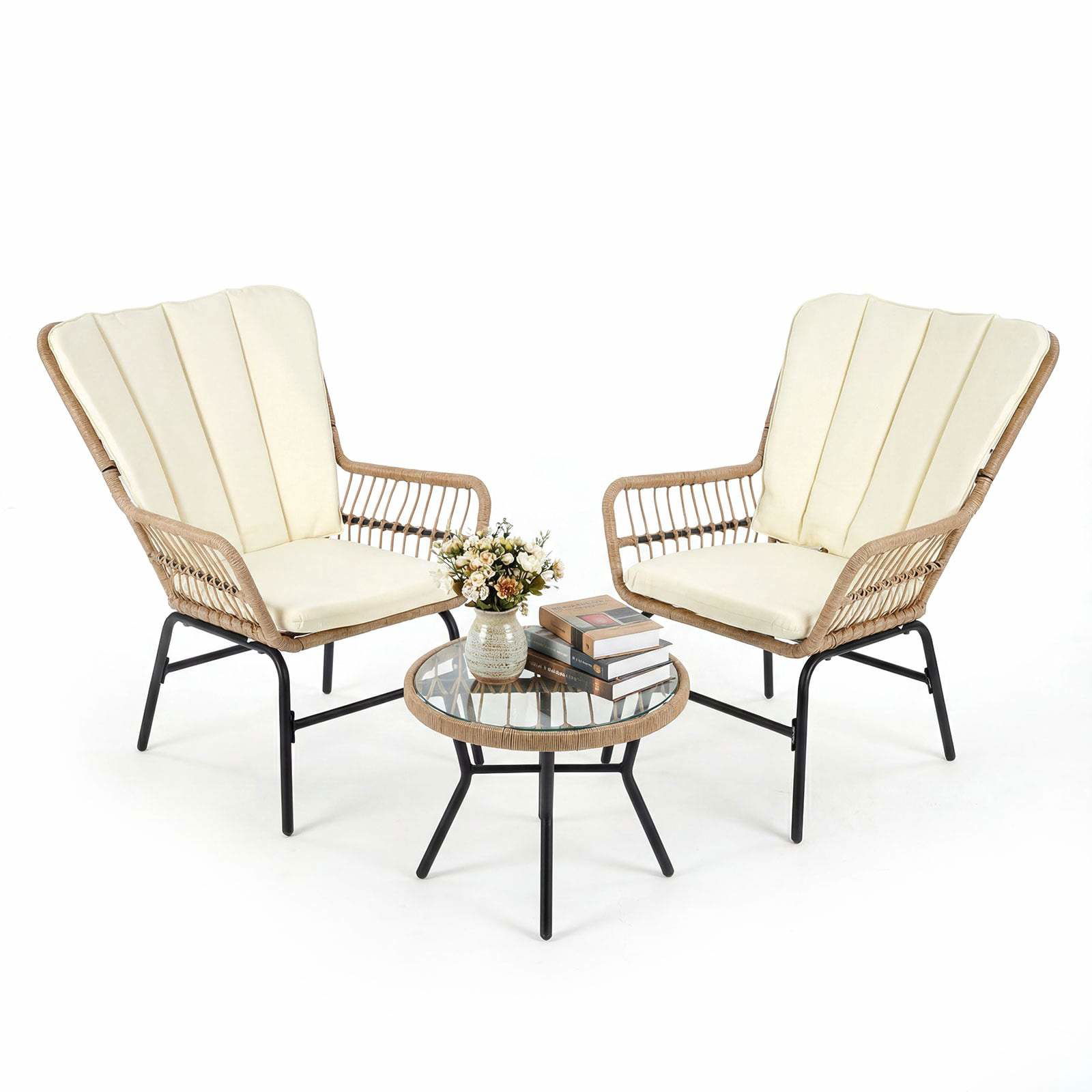 Wicker möbelset 3-delat modernt bistroset för terrassen