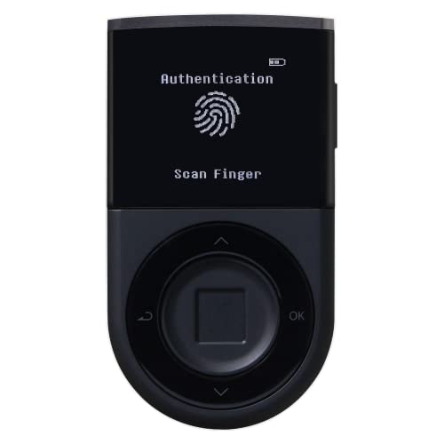 D'CENT Biometrisk Kall Plånbok - Cryptocurrency Hårdvara Med Bluetooth - Stödjer Bitcoin, Ethereum och Fler Mynt, Svart, 9.0(W) x 14.0(H) x 5.0(W) cm
