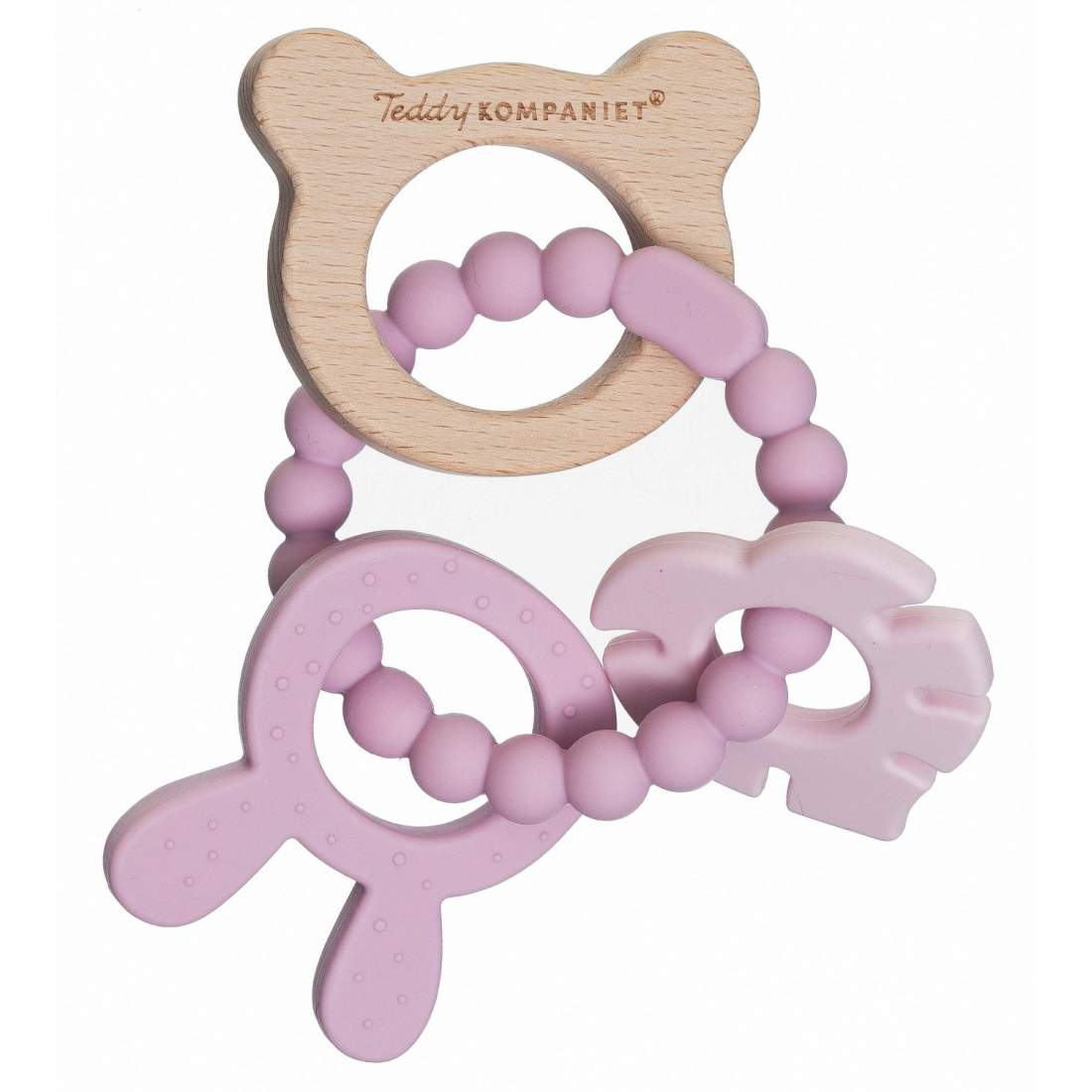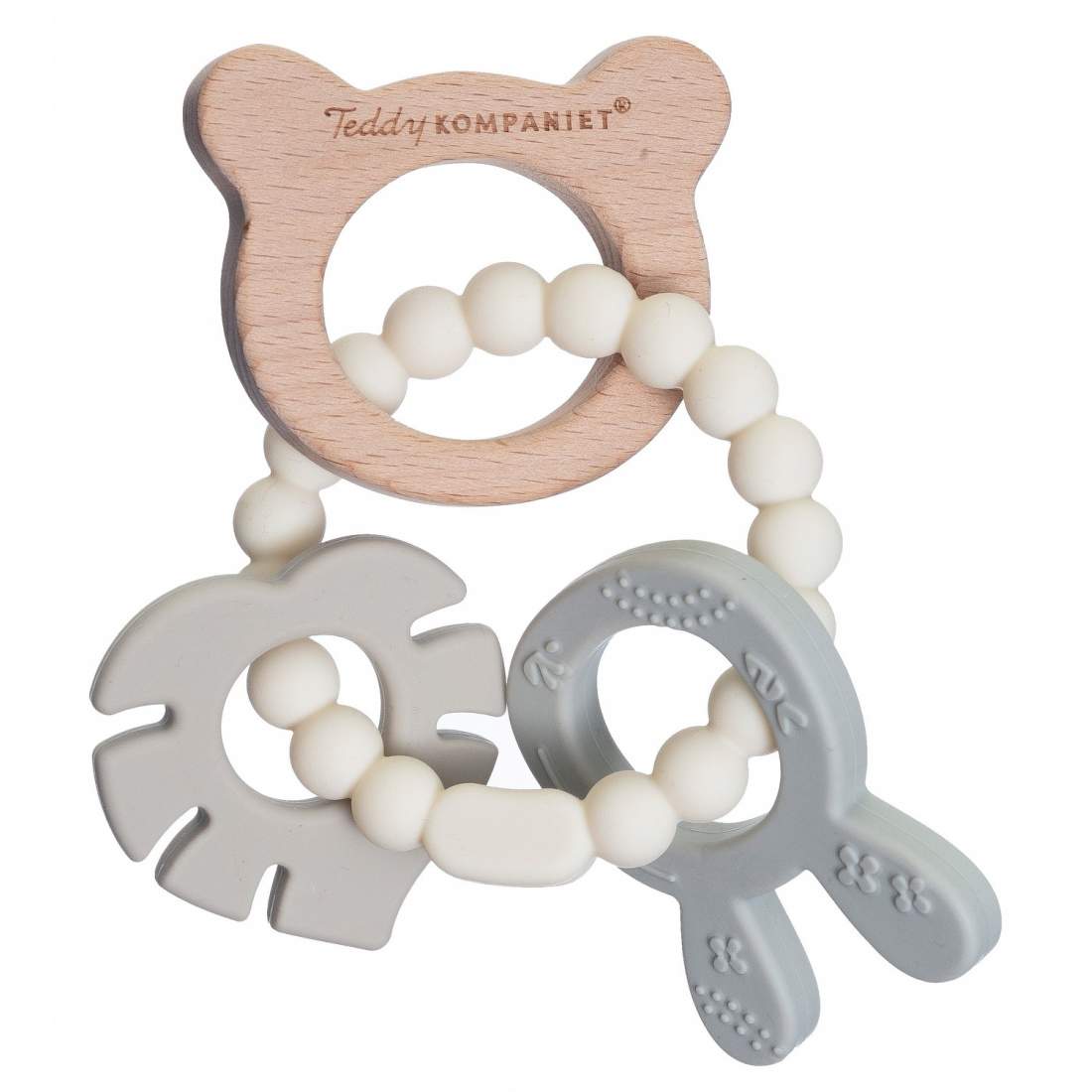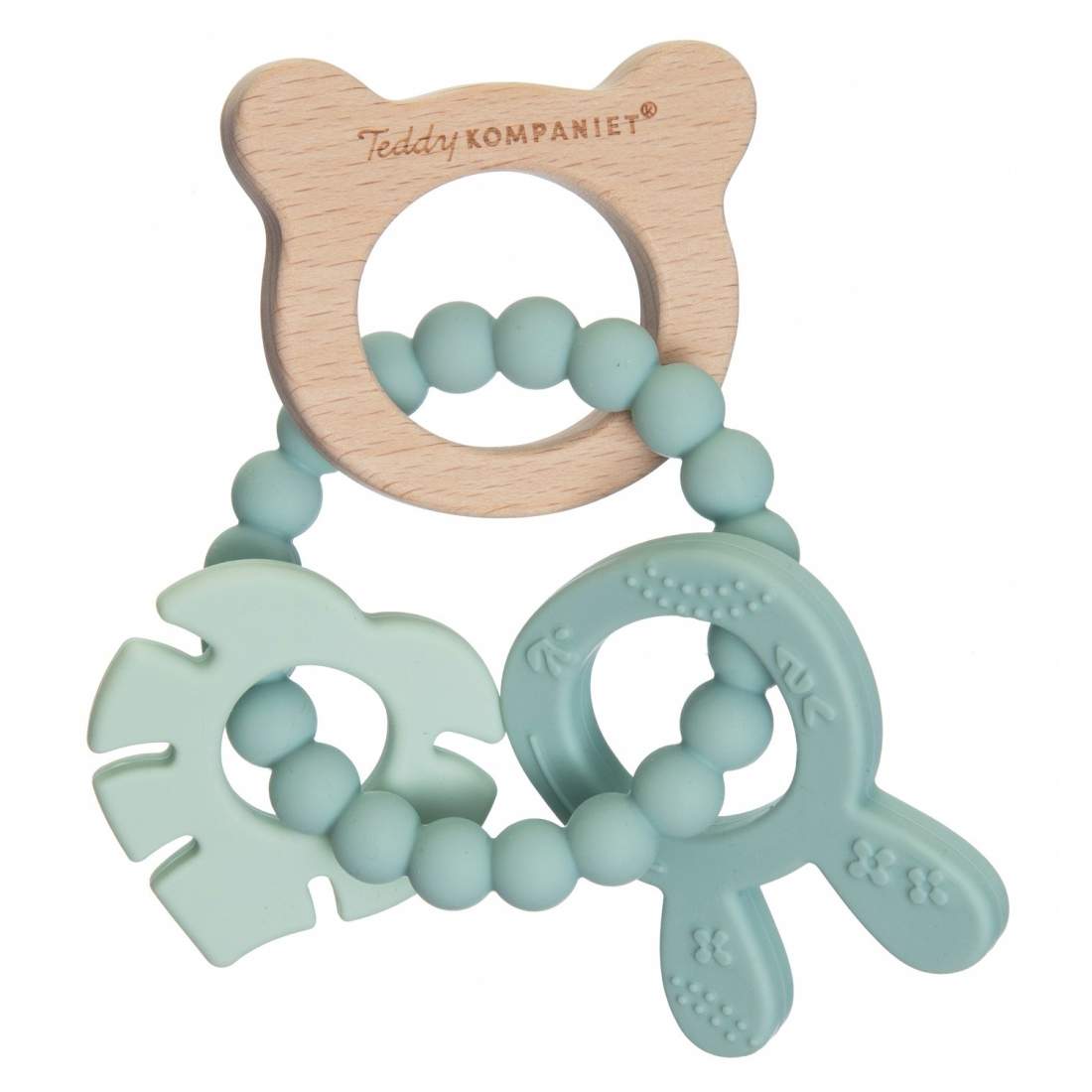 Bitring för baby, silikon och trä, lugnar tandköttet