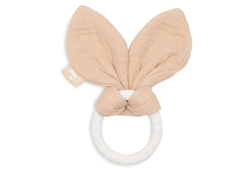 Jollein Bitring Baby Bunny Ears Moonstone – Baby Grifling – bomull – silikonring – OEKO-TEX certifierad – tandhjälp – babyleksak