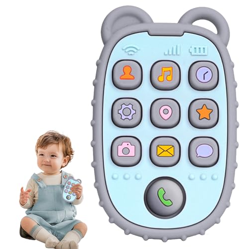 Aolso Bitring baby, silikon biteleksak, tecknad mobiltelefon bitring, silikon baby tuggleksak, BPA-fri, lugnar barnets sår tandkött, bileksak baby för pojkar och flickor (grågrön)