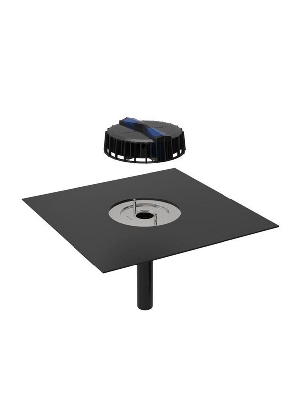 Platt takbrunn DN 70 inklusive bladfång, bitumen-fläns, takgully, inlopp, takdränering, DN 75