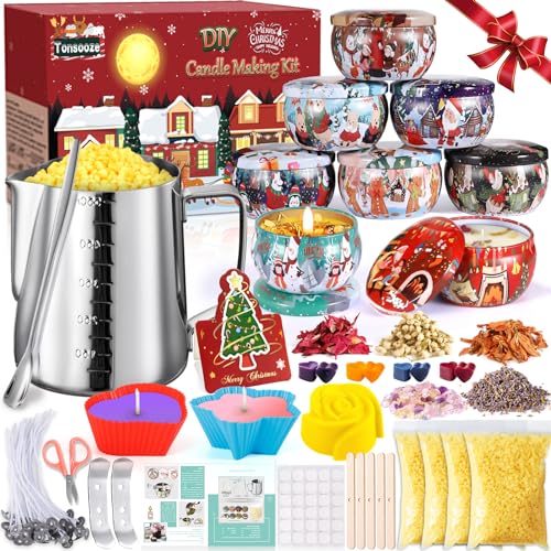 ZPQAODI gör-det-själv-ljustillverkningsset, julljusframställningsset, doftljuspresenter, 8 ljusburkar,4 färgämnen, silikonform, bivax, ljusvekar för ljus gör-det-själv-set