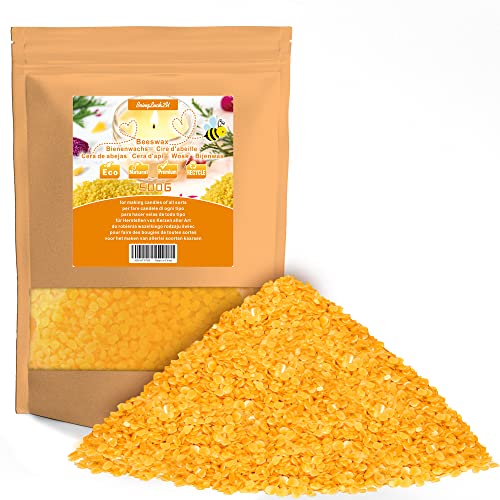 Bivax 500 g – ekologiskt bivax för kosmetika, 100 % ren och naturlig ljusvaxpellets – naturlig och ren, lämplig för tvålar, ljustillverkning och hudvård/trä