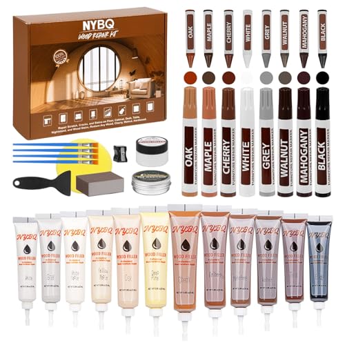 Hupeyna Trä Möbler Reparationssats, 21 st Trä Putty, Träfyllmedel och bivax - Reparation sprickor, rep, hål, missfärgning för trägolv, dörr, laminat, bord, skåp ytor
