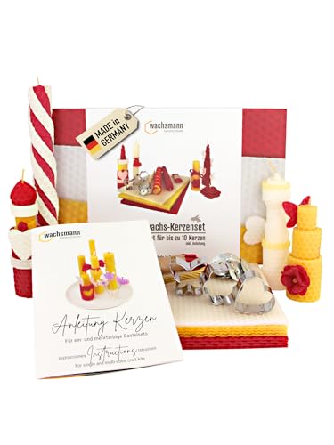 Gör egna bivaxljus Set för 10 bivaxljus, DIY-hantverksset i färgglada färger för barn och vuxna, vaxplattor och vekar, tyska bivaxplattor