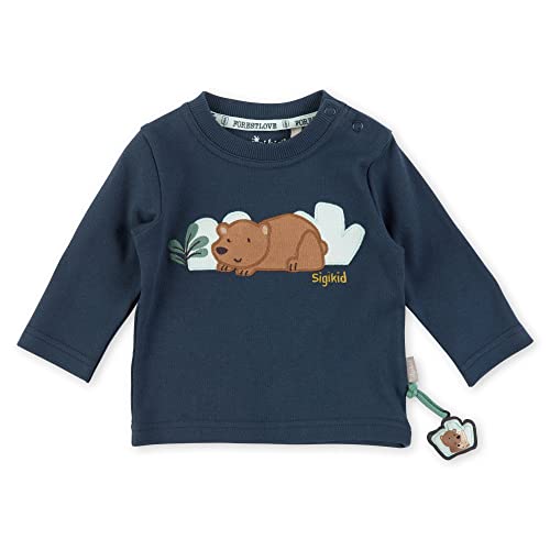 Sigikid Baby pojkar långärmad tröja av ekologisk bomull t-shirt, mörkblå/björn, 62