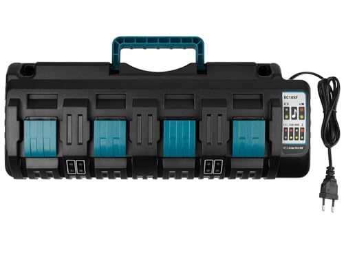 18V Laddare 4-Portars DC18SF för Makita 14,4V-18V Batteri BL1850 BL1815N BL1830 BL1840 BL1850 BL1860, BL1430 BL1415 BL1450, 3A Laddare Snabbt med USB, Ersättning DC18RD DC18RE DC18RC DC18RA