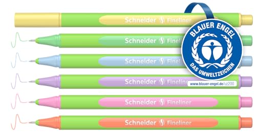 Schneider Line-Up Pastell fineliner (linjetjocklek 0,4 mm, tillverkad av biobaserad plast, utmärkt med den blå ängeln) 6 stycken, sorterade