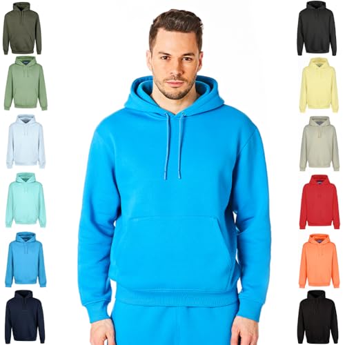 RIPT enkel långärmad huvtröja för män, mjuk beröring, myskläder med huva, topp, Blå Aster, XXL