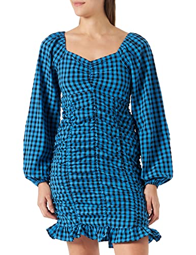 PIECES Damklänning Pcnoelia Ls klänning, Blå aster/kontroll: kontrollera, XL