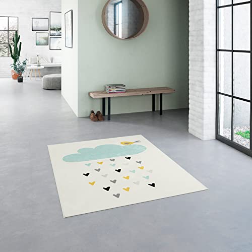 Hanse Home Adventures Barnmatta – regnbåge moln mönster matta pojke flicka för barnrum, lekrum, ungdomsrum, vardagsrum – creme, 160 x 235 cm