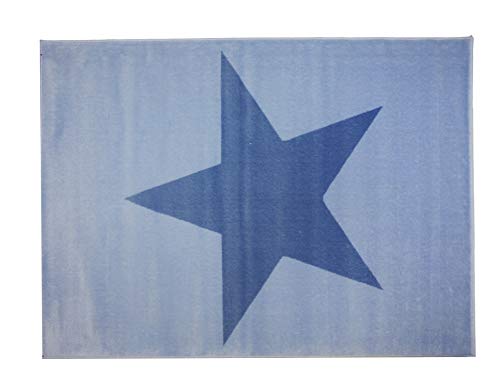 Merinos Barnmatta, pojke, matta, barnrum med stjärna, moln i blått, grått, gräddvit, storlek 140 x 200 cm
