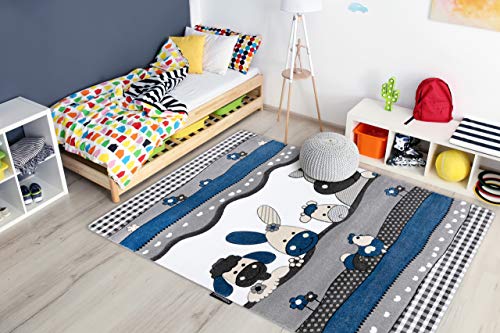 BALTA Barnmatta, rektangulär matta med kort lugg, perfekt för barnrum - lekrum, lättskött - fläckbeständig, 100% polypropen, 160 x 230 cm, beige - blå