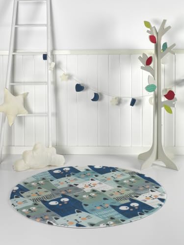 Livabliss ugglor barnmatta – barnmatta för sovrum 160 x 220 cm, djur barnmatta för flickor och pojkar, sovrumsmatta, lekrum och barnkammarmattor – babymatta för flicka eller pojkrum, beige, blå och