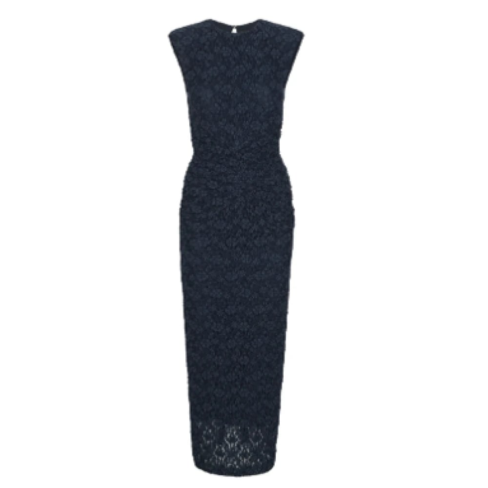 Rotate Birger Christensen, Klänningar , Dam, XL, Bomull, Blå blommig spetsklänning med rund hals