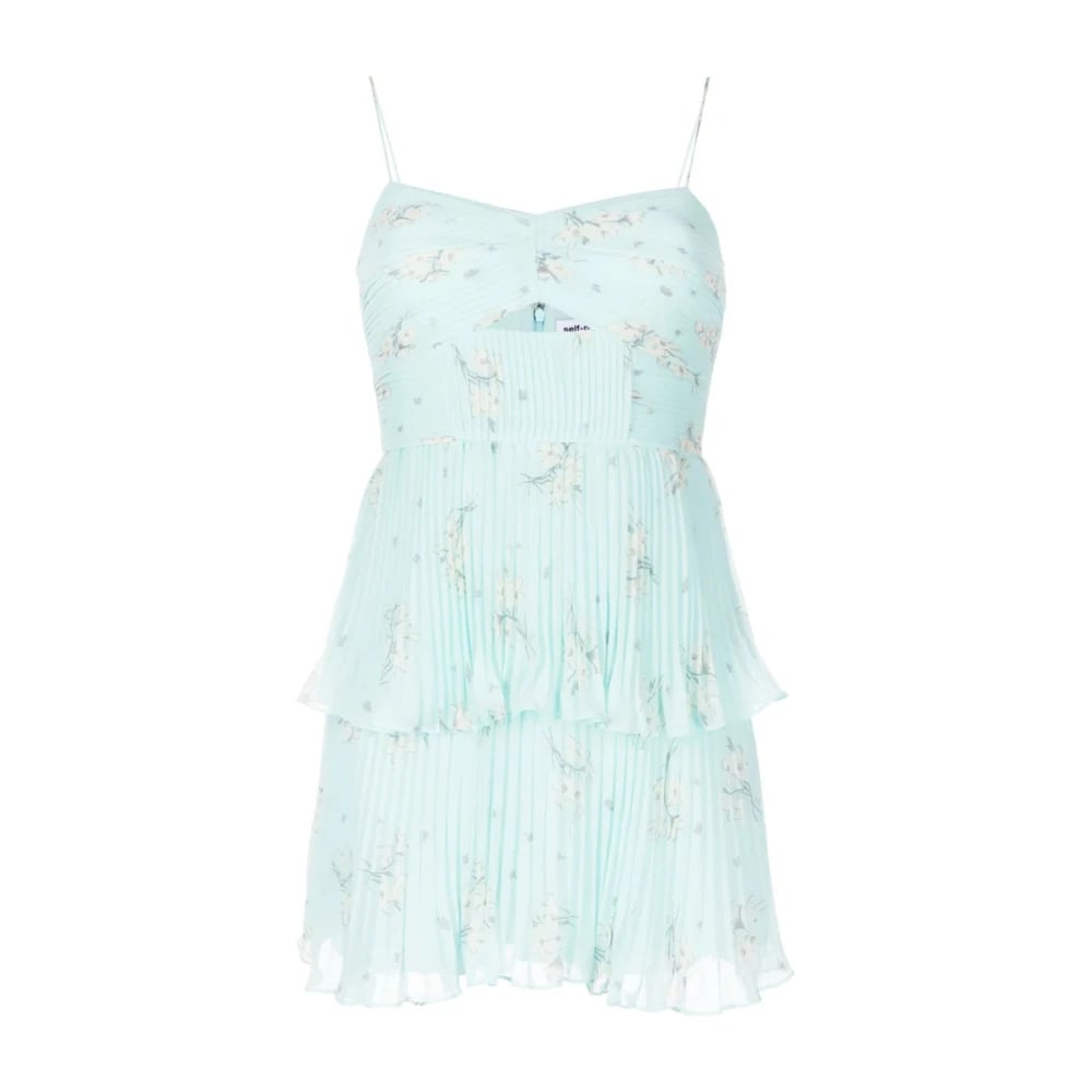 Self Portrait, Klänningar , Dam, XS, Polyester, Blå Blommig Elegant Mini Klänning