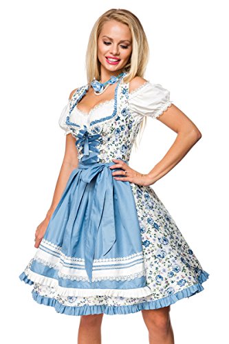 Dirndline Dam Romatisk blommig Dirndl-klänning för speciella tillfällen, Vit/blå, L