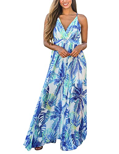 BUOYDM Klänning Casual Lång Sexig Boho Blommig Maxi Klänning med V-ringning Strand Sommar Klänning…, Blå 4, XL