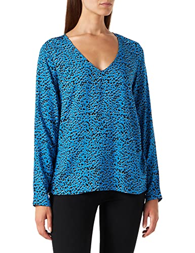 KAFFE dam långärmad blus tryck tröja med V-hals, blå, 46