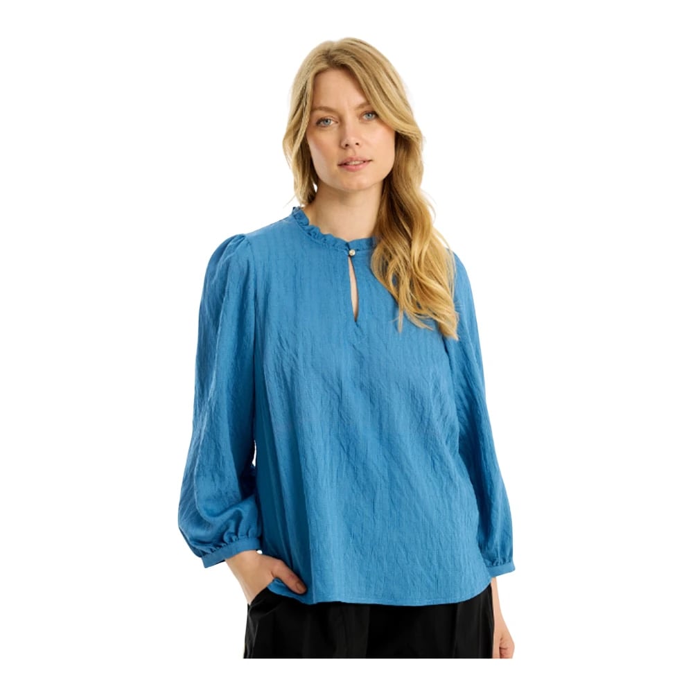 Cream, Blusar & Skjortor , Dam, S, Blå Blus med Rynkdetalj