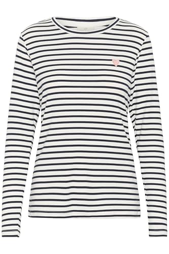 KAFFE långärmad T-shirt randig blus med rund hals, blå, XL dam