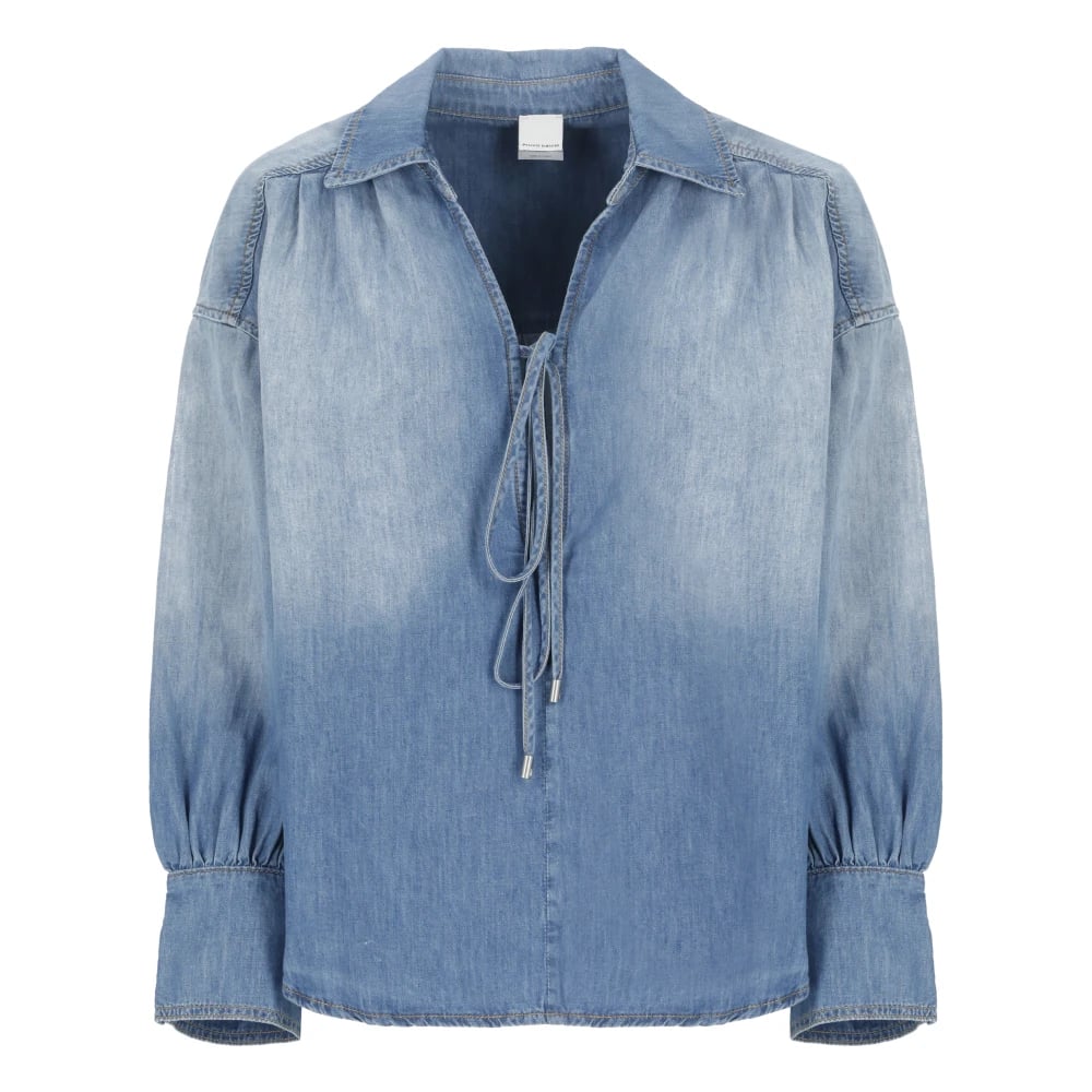 Pinko, Blusar & Skjortor , Dam, S, Denim, Blå Denim Blus med V-ringning
