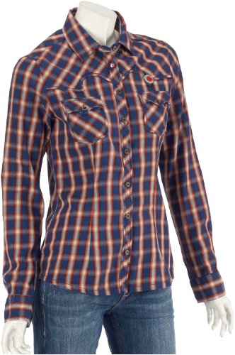 Timezone Dam pojkvän passform blus, Blå röd flerfärgad, XS