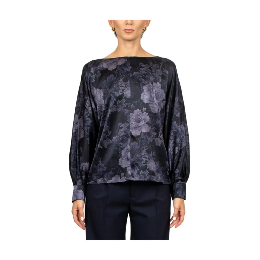 Rinascimento, Blusar & Skjortor , Dam, XL, Polyester, Blå Blommig Långärmad Blus