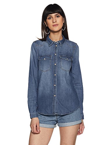 NOISY MAY Dam NMCATHY DENIM SHIRT MED BLÅ NOOS Blus, Blå (Medium Blå Denim), 40 (Tillverkarens storlek: L), Blå (medium blå denim), L